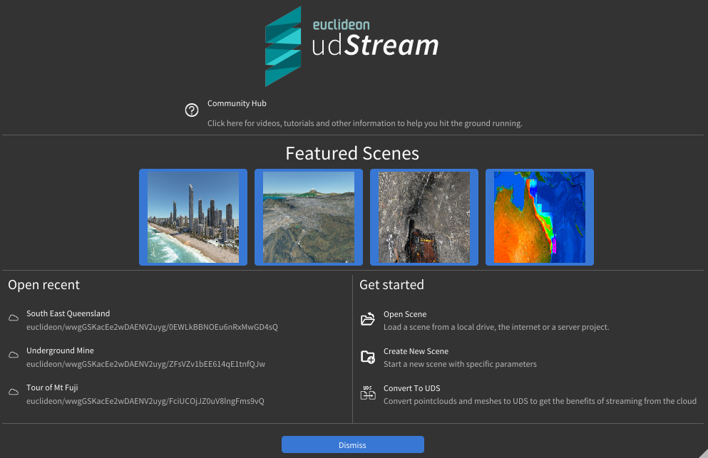 Once you have entered your udCloud account information correctly, click the "Sign In" button. The udStream application will open to the startup screen, and you can safely close the udCloud login tab in your browser.